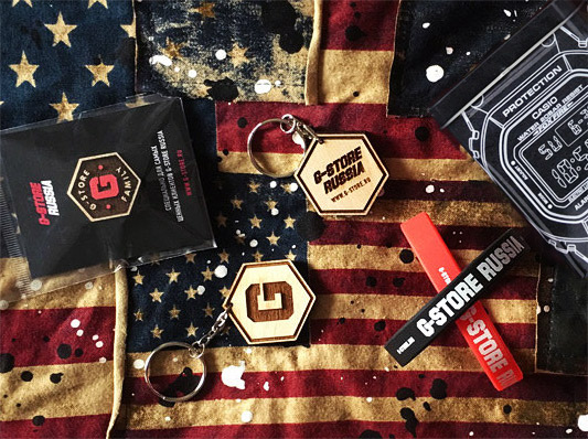 А бонусом к вашему заказу станут: деревянные хендмейд брелок и значок G-STORE FAMILY, стикер-пак, попсокет (держатель для смартфона или планшета) и силиконовые браслеты G-STORE RUSSIA.