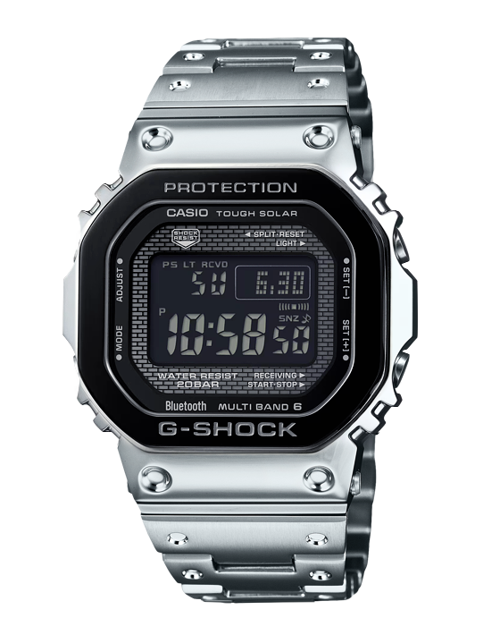 Стальной корпус по-прежнему имеет великолепную обработку, а инверсионный дисплей вместе с черным безелем создает целостный фронтальный вид часов. Задняя крышка черная и защищена сверх-прочным DLC-покрытием. Внутри, гасящий любые удары, слой из материала Alpha Gel® и металлическая капсула с механизмом часов. Благодаря такой структуре инженеры Casio достигли абсолютной ударопрочности несмотря на использование в модели металла вместо привычного полимера.