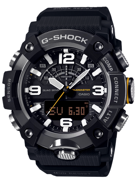 Отметим также улучшенную технологию абсолютной пыле- и грязеустройчивости, легендарную джишоковую ударопрочность, водозащиту до 200 метров, сверхмощную подсветку циферблата, дисплея и необрайт стрелок, а также новую конструкцию задней крышки, теперь она двойная: стальная крышка обеспечивает герметичность часов, а внешний слой из полимерного стекловолокна гасит любые удары.