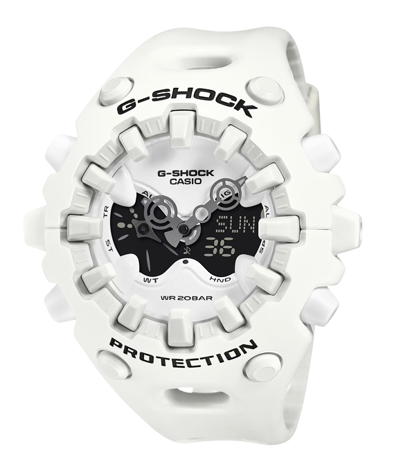 Одна из версий появления этих необычных шоков — отсылка к первому концепту G-Shock из 80-х годов, когда Кикуо Ибэ (создатель часов G-Shock) поместил механизм часов внутрь большого амортизирующего шара (см. фото ниже) для испытаний ударопрочности конструкции.
