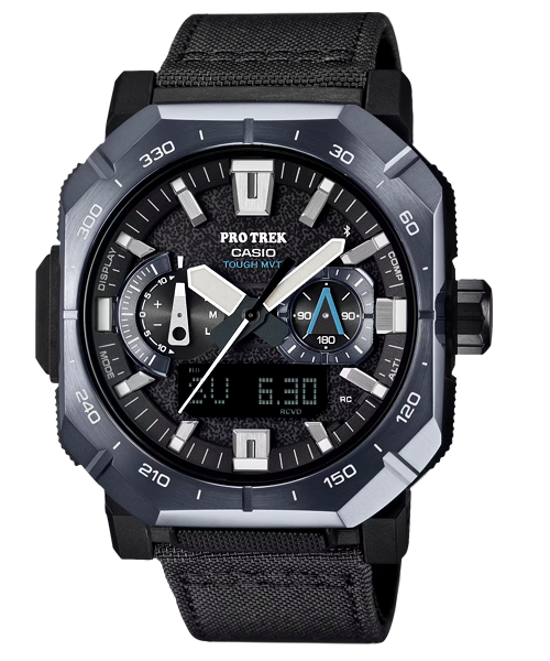 Под капотом у флагмана PRO TREK вы найдете тройной датчик в виде термометра, барометра, высотомера и цифрового компаса, график набора высоты, солнечную батарею, автоматическую радио-синхронизацию с атомными часами на разных континентах, сапфировое стекло с антибликом и еще более десятка часовых функций.