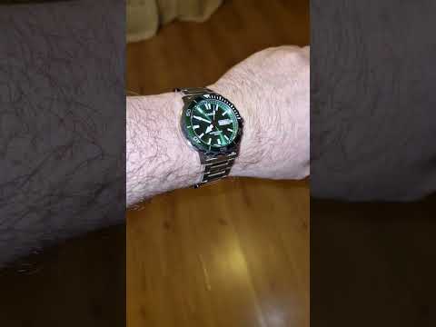 Отдельно отметим эргономичность часов: секундная стрелка с противовесом, крупная контрастная минутная, часовая стрелка и метки, позволяют быстро и удобно считывать текущее время. Добавьте сюда дайверский безель, водозащиту в 10 Бар, отображение даты и дня недели, стальной браслет, чтобы получить прекрасную "рабочую лошадку" на каждый день.