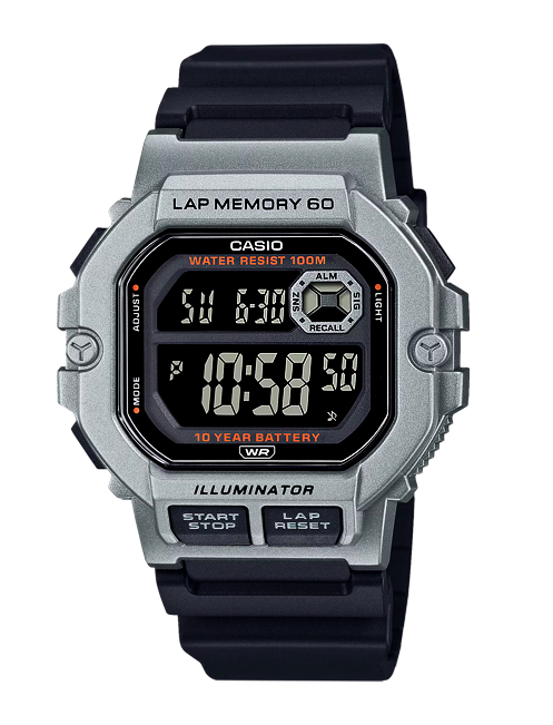 Модель выполнена в корпусе среднего размера и отлично подойдет для любителей цикличных кардио тренировок и иных спортивных активностей. На борту можно найти многофункциональный секундомер с точностью измерения 1/100 секунды, возможностью запускать его мгновенно отдельным кнопками на корпусе, а также памятью на 60 кругов. Также отметим наличие таймера, будильников и ежечасного сигнала.