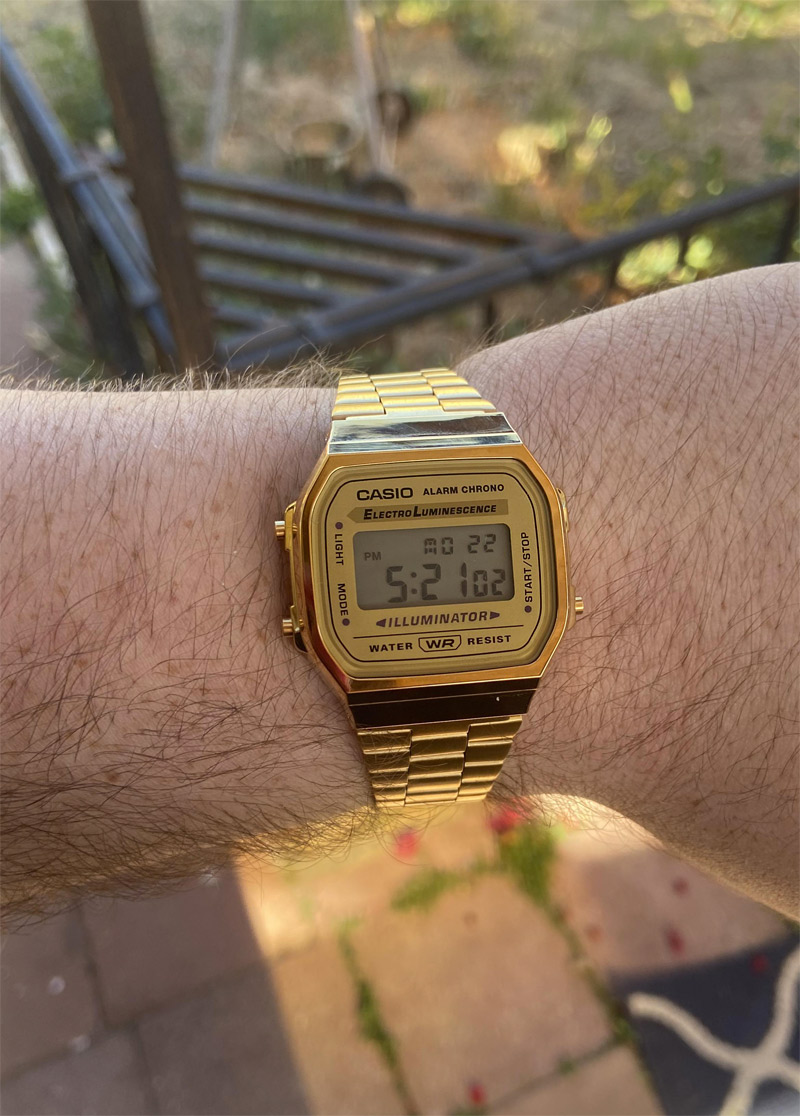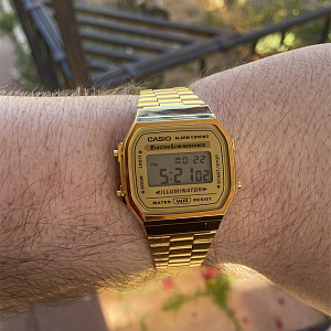 Перед вами один из самых узнаваемых часовых корпусов во всем мире — унисекс цифровая модель из серии CASIO VINTAGE в пластиковом корпусе A168 с металлическим покрытием золотого цвета и классическим циферблатом. Внешний вид часов пропитан стилистикой 70-х и 80-х годов прошлого века и можно с уверенностью сказать, что данные часы станут прекрасным выбором в качестве модели на каждый день или аксессуаром, который будет приковывать к себе взгляды окружающих и сможет гармонично дополнить тот или иной образ.