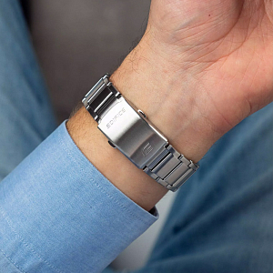 Свежий релиз 2023 года в коллекции Edifice — аналого-цифровой хронограф из серии EFV-C110 в лаконичном стальном корпусе на стальном браслете. Прочное закаленное минеральное стекло защищает сложный и фактурный сине-голубой циферблат с контрастными стрелками и метками от механических повреждений, а на дисплеях часов отображается текущая дата и день недели, а также показатели таймера и секундомера или содержимое записной книжки (вы можете добавить в часы до 30 паролей или важных контактов).