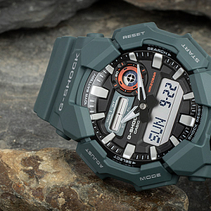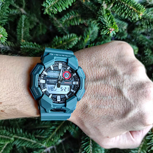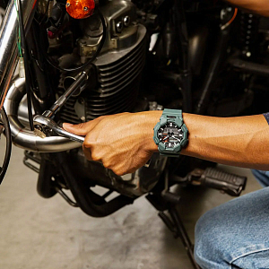 Горячий релиз второй половины 2024 года из серии G-SHOCK GA-010 в крупном брутальном корпусе цвета океанской волны с аналого-цифровым циферблатом. Модели серии GA-010 получили харизматичный агрессивный внешний вид и технологию Carbon Core Guard: модуль часов защищает 2 слоя корпуса, внешний полимерный и внутренний легкий и сверхпрочный с углеродным армированием, а циферблат покрыт закаленным минеральным стеклом.