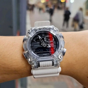 Перед вами лимитированный релиз 2022 года из свежей серии G-SHOCK GA-900 в брутальном и массивном белом полупрозрачном корпусе. Модели серии GA-900 получили аналого-цифровую индикацию времени и харизматичный внешний вид, исполненный в индастриал стилистике.