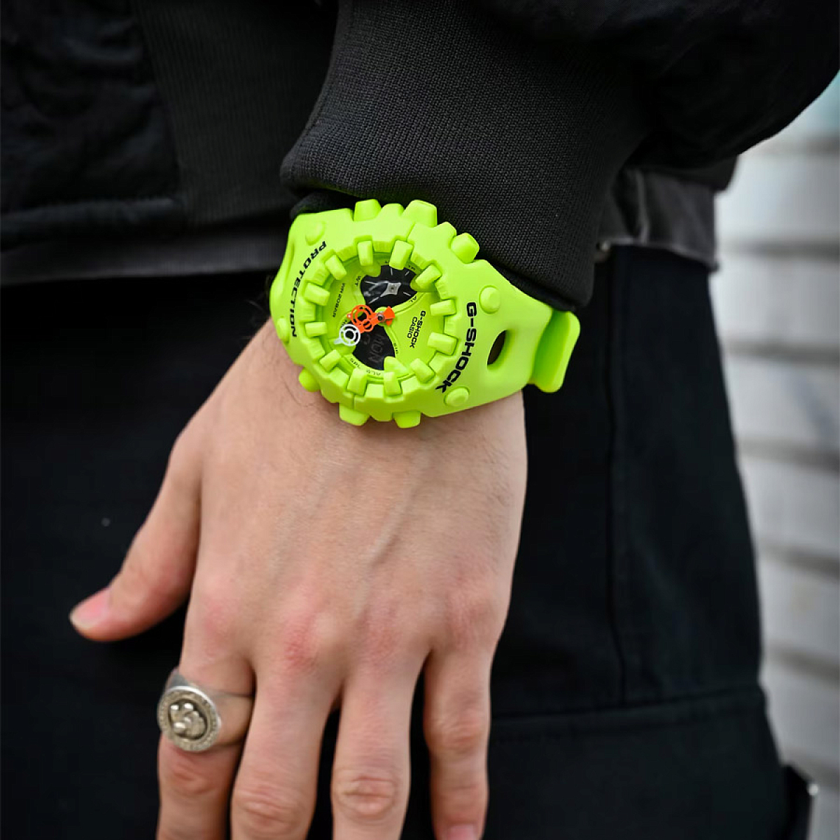Что вы знаете про эпатаж? Перед вами релиз 2025 года в новом массивном корпусе GA-V01 с необычным олдскульно-футуристичным дизайном в кислотной расцветке и оранжево-белыми стрелками. Тот случай, когда джишоки не никого оставляют равнодушным: одни считают их классными, другие же просто не могут терпеть!