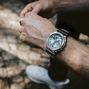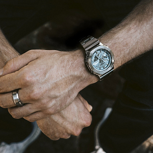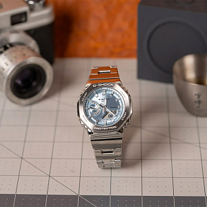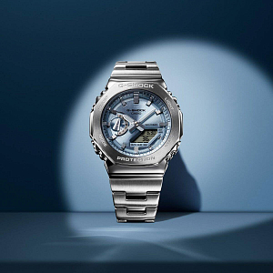 Супер стильный лимитированный релиз 2024 года из серии G-Shock GM-2100 в стальном корпусе в форме октагона на браслете с необычным циферблатом. Напомним, что это эволюционное продолжение популярной полимерной серии GA-2100 теперь облаченной в металл.