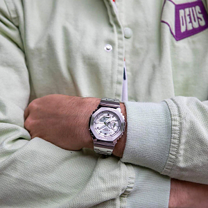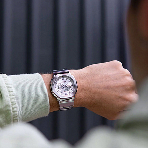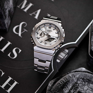 Супер стильный лимитированный релиз 2024 года из серии G-Shock GM-2100 в стальном корпусе в форме октагона на браслете. Напомним, что это эволюционное продолжение популярной полимерной серии GA-2100 теперь облаченной в металл.