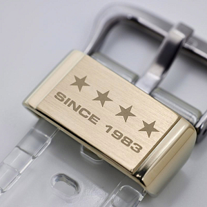 Помимо супер харизматичного внешнего вида часы получили стальной держатель ремешка золотого цвета и гравировку задней крышки с лого юбилея бренда. Не забываем и об особенном юбилейном дизайне упаковки (см. доп фото ниже).