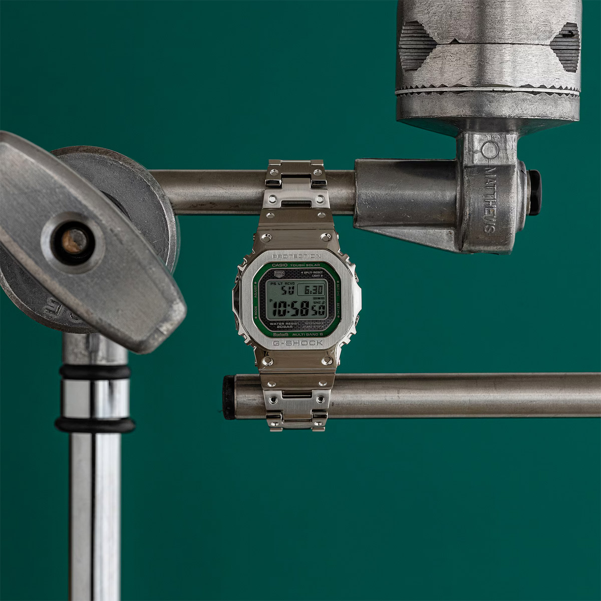 Перед вами супер-лимитированный релиз второй половины 2024 года от Casio! Легендарный олдскульный корпус GMW-B5000, облаченный в классическую сталь с окантовкой вокруг дисплея благородного зеленого оттенка.