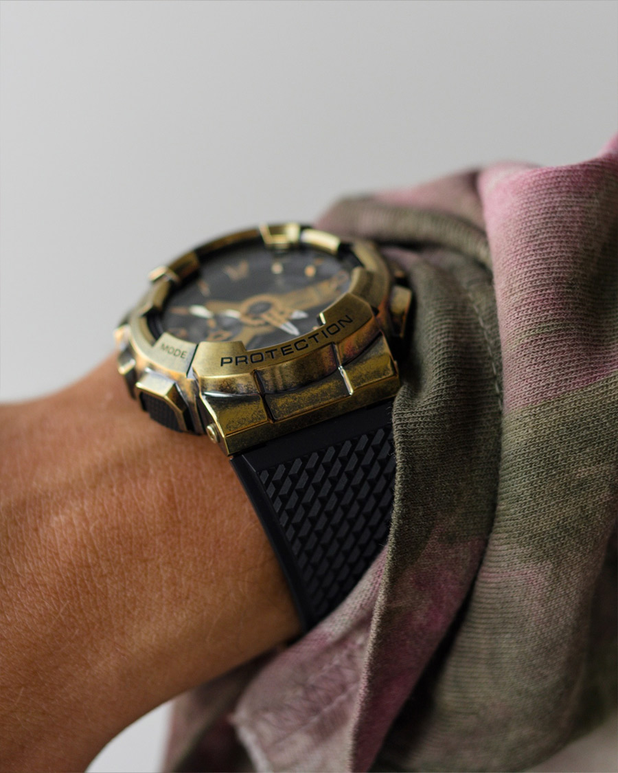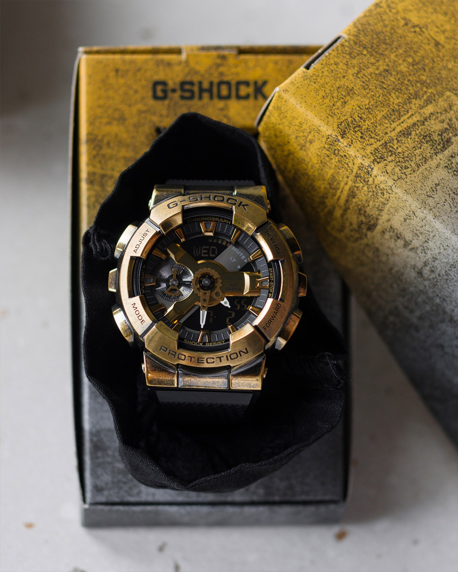 Лимитированный релиз 2023 года из серии G-SHOCK GM-110 с обновленной расцветкой в матовом стальной корпусе золотого цвета с эффектом состаривания! Супер харизматичная винтажная модель, которая подойдет далеко не каждому и требует не меньше собственной харизмы от своего обладателя.