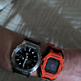 Хотел на лето что-то лёгкое, некрупное, не металл, недорогое. Вот оно: шоки GD-B500FL-4E. Сборка - Таиланд(пока-что не Трамполэнд). Оранжево-черный корпус, не приторно-яркий, скорее цвет припыленного спас.жилета. Классный цвет-летний мужской вариант. Ударопрочные, 20бар-что ещё надо, чтобы не бояться воды, ползать по зарослям и не дрожать за часы. В Ролексах дрова рубить не будешь. Функционал-достаточно богатый, но ничего лишнего Есть экономия заряда, с 22 до 6 вырубаются, если лежат отдельно от тела. Все настроить можно через блютуз (третьи часы с Блю, очень удобно и понятно). Что критично для меня-обычная батарея, не солнце, живу на севере,рубашка-свитер, солнце не вариант. Ну и самое главное - размер...Это что за Малыш?!! И толщина всего 11. Наконец шоки выглядят на некрупном запястье не как кастрюлька Кировского завода времён 60х. Специально сфотил совместно с BM-2100C(из рабочих лошадок-любимые). Разница ощутима... Зрение не очень-дисплей инверсионный, это +, на солнце ещё не тестил, а при тусклом вечернем свете прямо на циферблат-ничего не вижу почему-то, но на руке под углом все видно, если с подсветкой,то отлично и прямо и под углом. Часиками очень доволен, доставка и упаковка как всегда у G-store на пять. Документы все в наличии + набор вкусняшек: браслетик,брелок,наклейки, значок и т.д. В общем, спасибо магазину и мне за такое приобретение.