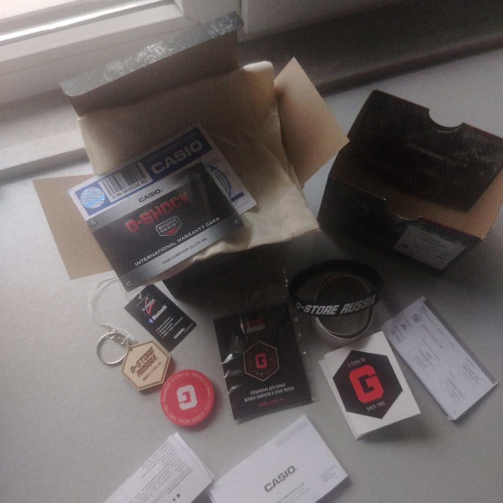 Часы без нареканий, комплект сопутствующей документации полный. Металической G-shock’овской банки нету, только коробочка для часов. Упаковано отлично, положили фирменный пакетик и брендовые плюшки как подарок. Покупкой доволен