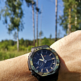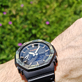 Не могу не поставить 5. Сервис, работа сайта и доставка, всё на высшем уровне. Джишоковские лейкопластыри в стальном коробе, наклейки, брелки и браслеты в посылке - действительно большая милая приятность. Выбирал себе скромные, не аляповатые часы с лунными фазами. Главное, чтобы часы были небольших габаритов, а то рука у меня эктоморфная, щуплая. Остановил свой выбор на GLX-5600VH-1E. Сегодня приехали. От заказа до получения прошла неделя, это довольно быстро, учитывая, что живу в самом южном регионе. В реале часы оказались даже чуть меньше, чем на фото, в самом лучшем смысле. Если у вас худосочное запястье, эти часы - отличный вариант. Качество в целом на высоте. Но сразу заметил для себя пару минусов: у часов тугие кнопки, и кожа потеет под полимерным ремешком.